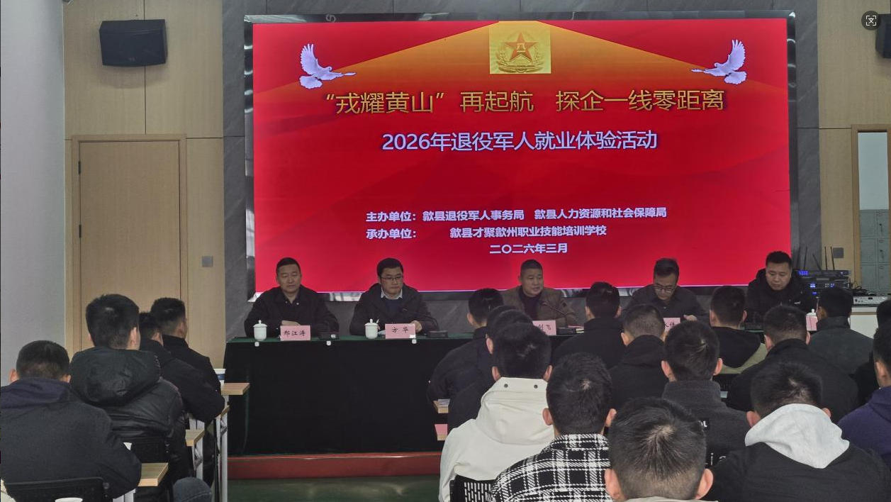 3月6日,为帮助退役士兵尽快适应地方发展、提升就业创业能力,我县2026年度退役士兵适应性培训班在歙县才聚歙州职业培训学校隆重开班。市、县退役军人事务局、县人力资源和社会保障局相关负责人出席开班典礼,40余名退役士兵参加培训。